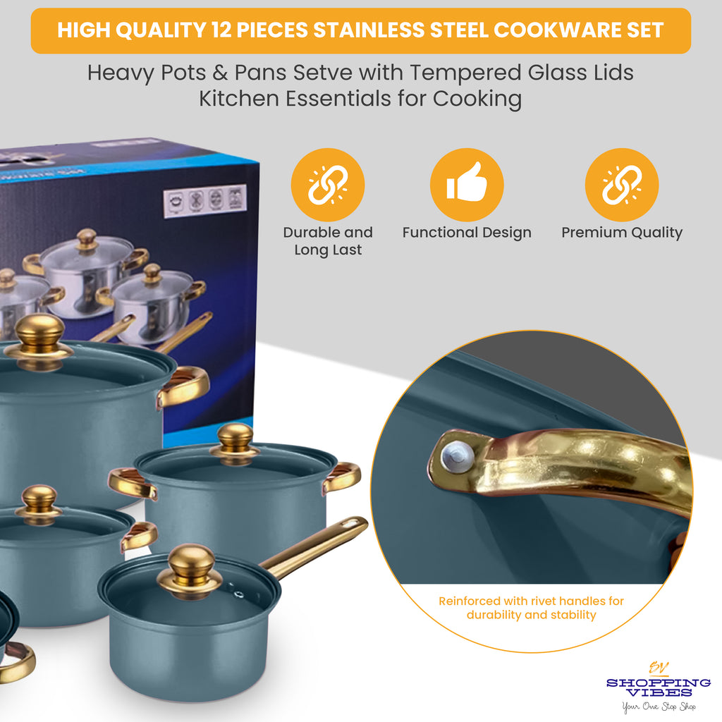 Your search for the perfect pots and pans set ends here. This isn’t just cookware—it’s a kitchen revolution. Prepare to cook like a pro, wow your guests, and love every second you spend in the kitchen. Order your 12-piece stainless steel cookware set today and turn every meal into a masterpiece!