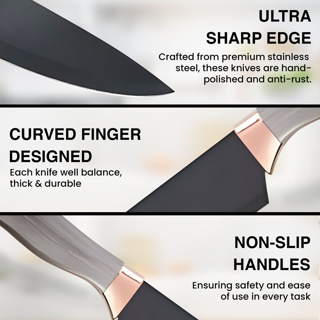Ready to slice through kitchen chaos and level up your cooking skills? Our knife set for the kitchen is more than just a tool—it’s a statement piece, designed for those who demand the best. Choose style, precision, and power—all wrapped in one exceptional set. Order yours now and experience the difference a premium cutlery set can make!