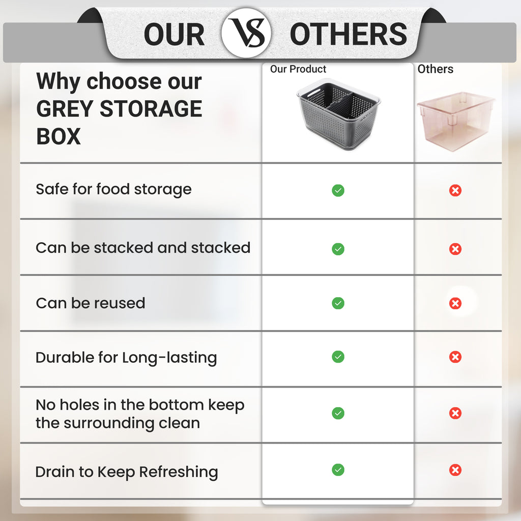 This BPA-free acrylic container is thoughtfully designed to extend the life of your produce. It combines style and practicality in one sleek package. The built-in ventilation openings allow optimal airflow, preventing moisture buildup and keeping your fruits and veggies crisp for longer.