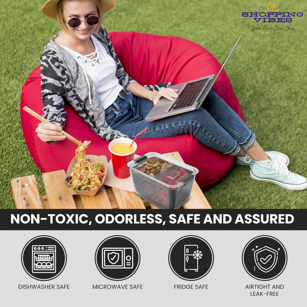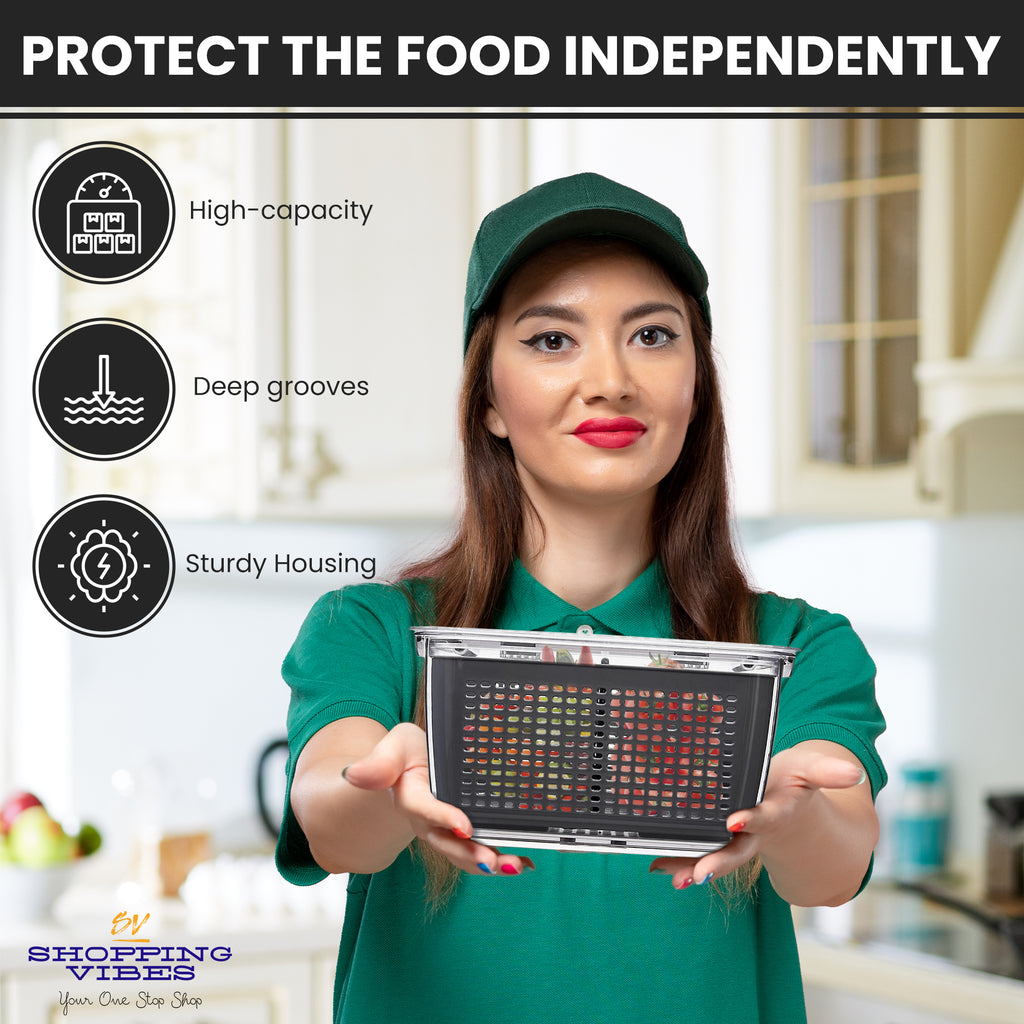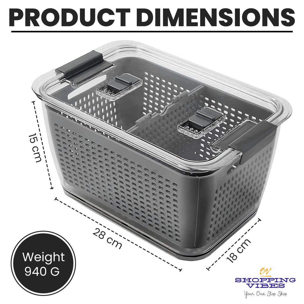 Discover the ultimate solution for keeping your fruits and vegetables fresh with the Food Storage Container with an Airtight Lid and ventilation Openings from SHOPPING VIBES.