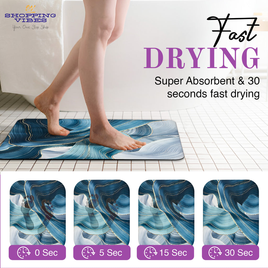 Our mats are crafted from natural diatom mud and high-quality rubber, making them not only super absorbent but also odor-free—yes, no more dealing with stinky, soggy mats! With 11 stunning designs to choose from, these mats add a touch of elegance to any bathroom, kitchen, or living area.