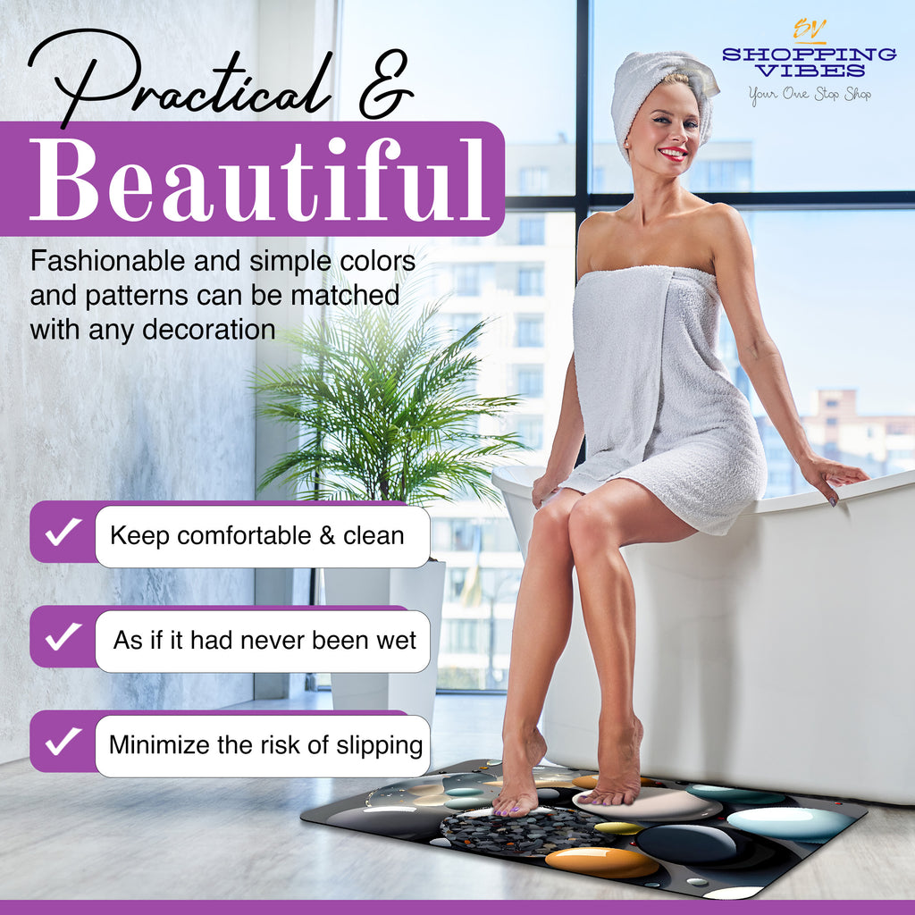 Imagine stepping out of the shower or kitchen onto a mat so soft and absorbent that it feels like luxury under your feet. Whether you're using it as a bathroom mat, kitchen mat, or even a floor mat for your entryway, our slim yet powerful design will keep your space dry, safe, and stylish.